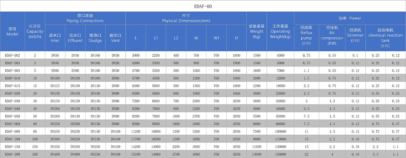 Ang ginagamot na effluent ay kinuha bilang nagpapalipat -lipat na tubig sa pamamagitan ng isang nagpapalipat -lipat na bomba at pumapasok sa natunaw na tangke ng hangin. Kasabay nito, ang naka-compress na hangin ay idinagdag sa natunaw na tangke ng hangin, at ang mahusay na paghahalo ng tubig na soda ay isinasagawa sa natunaw na tangke ng hangin. Pagkatapos ng paghahalo, ang natunaw na tubig ng hangin na naglalaman ng hangin ay ipinadala sa lugar ng contact ng air flotation. Ang agarang paglabas ng presyon sa pamamagitan ng releaser ay bumubuo ng isang malaking bilang ng mga microbubbles, na mabilis na nakadikit sa coagulated na nasuspinde na bagay. Ang density ng nasuspinde na bagay ay unti -unting mas mababa kaysa sa density ng tubig, at awtomatikong lumulutang ito sa ibabaw. Ang tubig sa ilalim ng kagamitan ay naiwan, at ito ay pinalabas sa malinis na lugar ng tubig sa pamamagitan ng aparato ng outlet ng tubig sa ilalim. Bahagi ng tubig sa malinis na lugar ng tubig ay patuloy na ginagamit bilang nagpapalipat -lipat na tubig para sa kagamitan, at ang natitira ay pinalabas sa susunod na proseso. Ang scum na lumulutang sa ibabaw ay na -scrap sa scum pool ng scraper para sa karagdagang paggamot.
